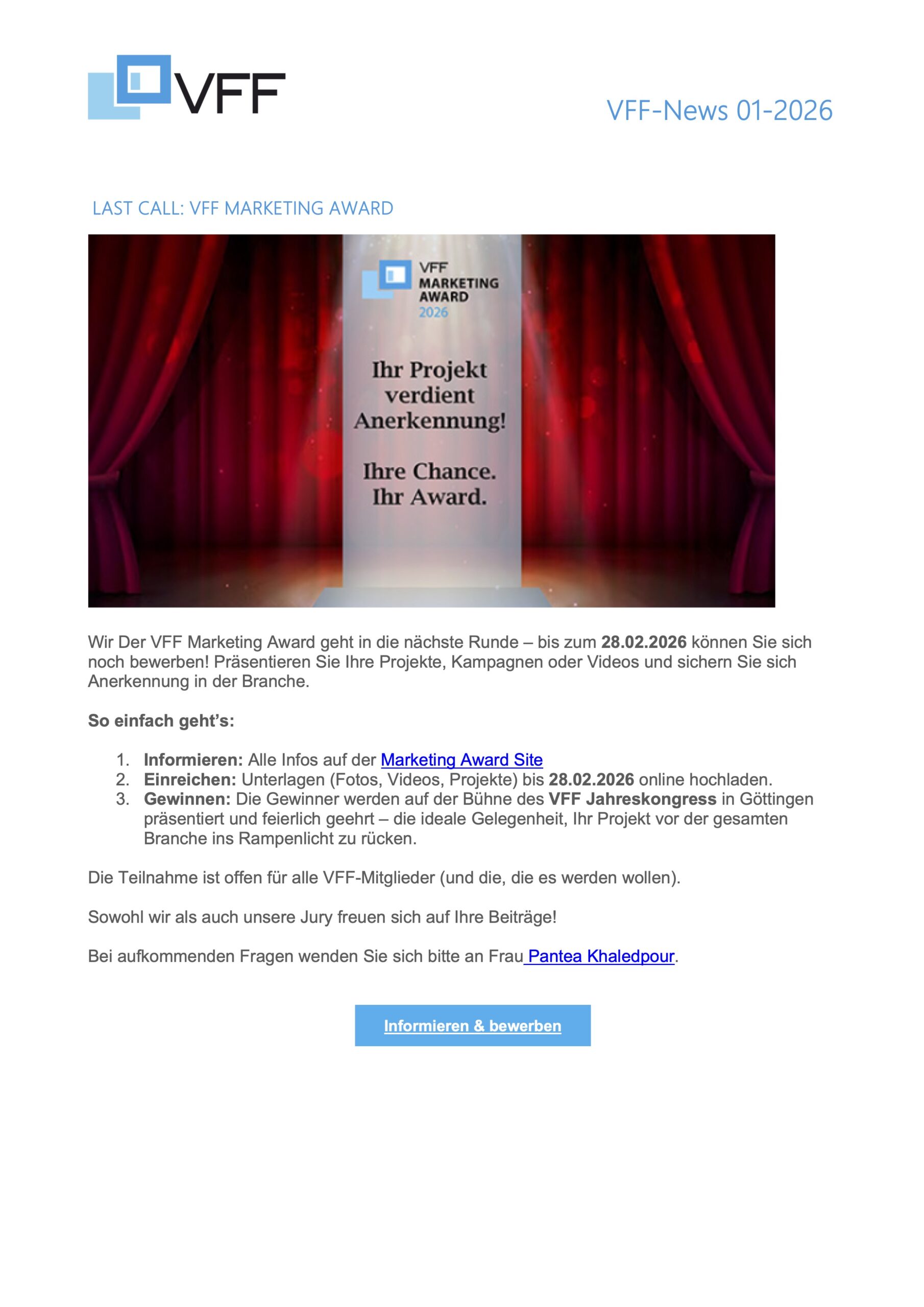 Sie möchten unsere monatlichen VFF-News mit